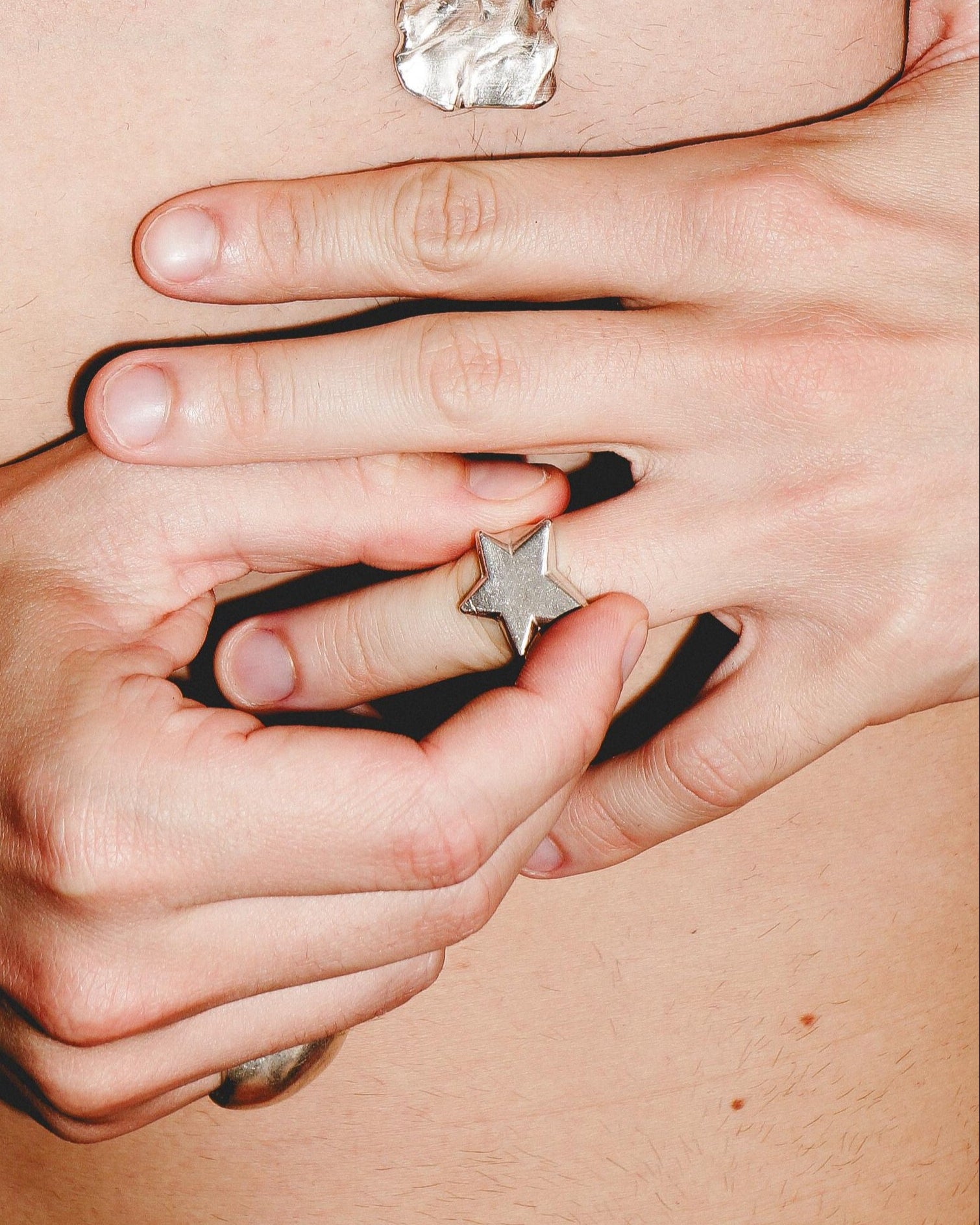 ✹ Sem apertar, envolva suavemente a base do dedo onde deseja usar o anel.